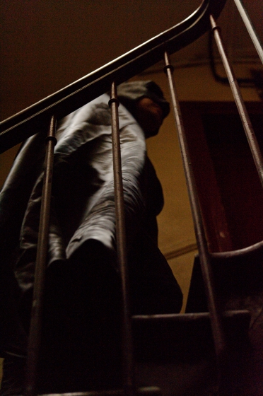 D’un clic, il capture la chauve-souris noire sur le drap blanc. « Sculptural » dit-il, enchaînant aussitôt une série de questions très directes à la manière d’un interrogatoire : pourquoi je poursuis cet homme, depuis combien de temps je le connais, ai-je quelque chose à redouter de lui ? Questions qui n’appellent pas de réponse, puisqu’il les enchaîne sans laisser de pause, continuant à me photographier. A figer mon malaise.